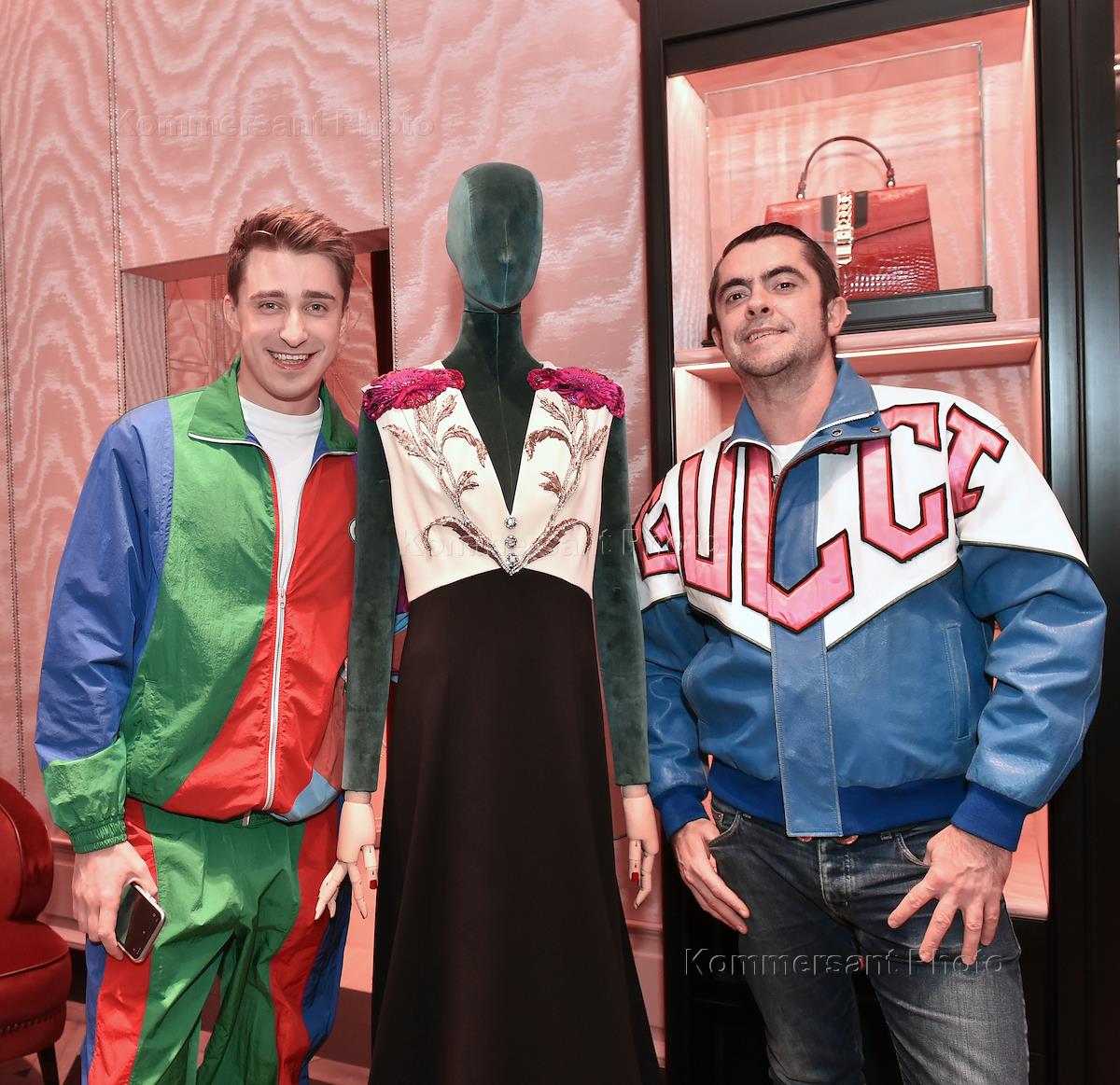 Коктейль, посвященный открытию бутика Gucci в галерее "Времена Года". Актер Артем Королев (слева) на…