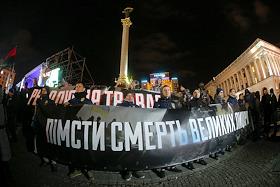 В Киеве на Майдане Незалежности прошло вече "Ми маємо гідність!" ("Имеем достоинство"), посвященное Дню достоинства и Свободы.