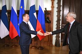 Председатель правительства России Дмитрий Медведев (слева) и премьер-министр Финляндии Антти Ринне…
