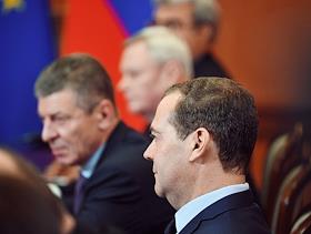 Председатель правительства России Дмитрий Медведев (справа) во время встречи с премьер-министром…
