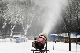 Жанровая фотография. Снеговые пушки на горнолыжном склоне в парке Крылатские холмы.