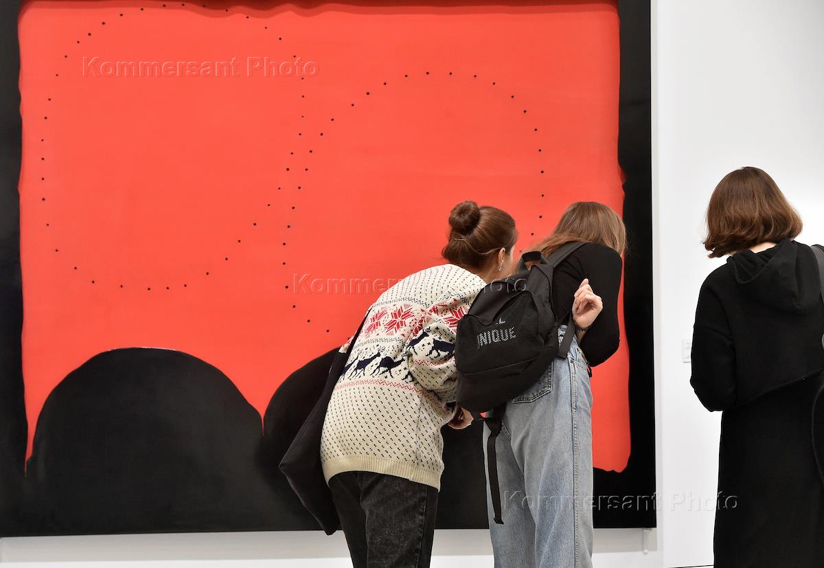 Церемония открытия выставки "Лучо Фонтана. Ретроспектива" в Мультимедиа Арт Музее. Посетители на…