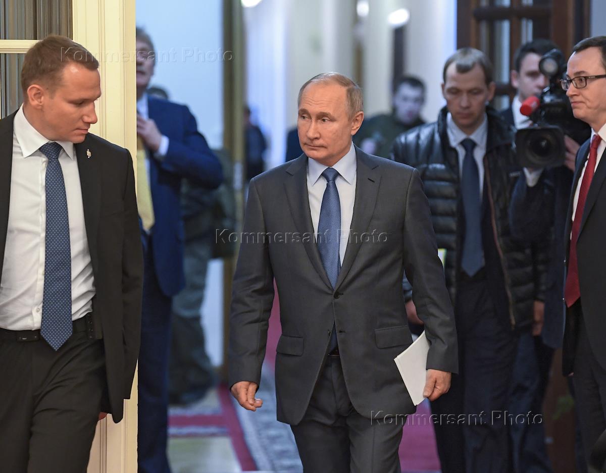 Рабочая поездка президента России Владимира Путина в Нальчик. Президент России Владимир Путин (в…