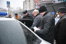 Снос здания киноцентра "Соловей на Красной Пресне". Пикет жителей города против сноса киноцентра.