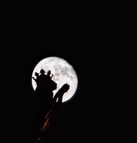 Жанровая фотография. Силуэт на фоне полной луны.