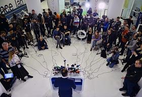 Жанровая фотография. Стояка с микрофонами перед началом пресс-подхода президент Олимпийского…