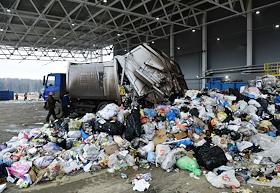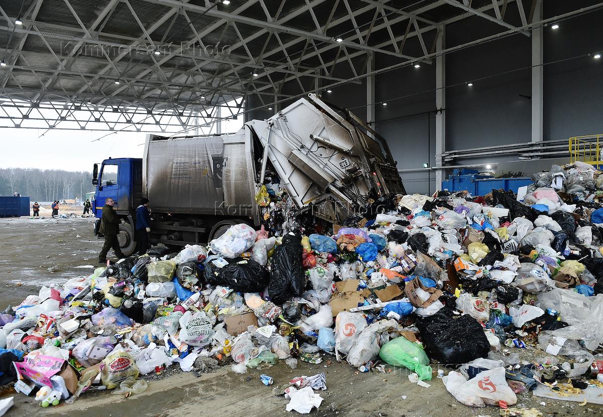 Комплекс по переработки отходов (КПО) "Юг" в селе Мячково Коломенского городского округа. Разгрузка …