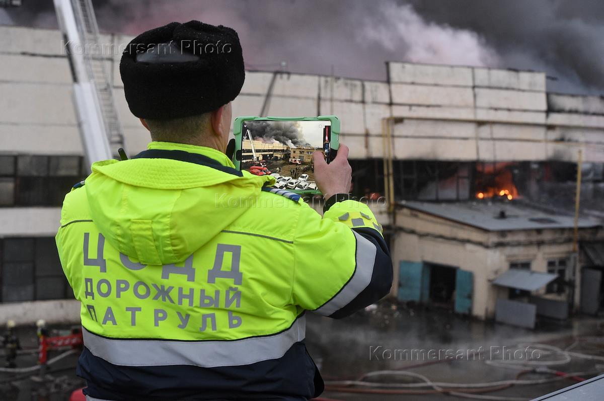 Пожар на складе тканей на Варшавском шоссе в районе Чертаново Центральное.