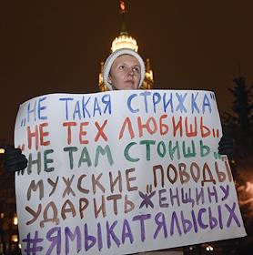 Участник пикета за принятие полной первоначальной формы закона "О профилактике домашнего насилия" у…