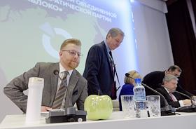 XXI cъезд партии "Яблоко" в зале научно-методического центра профсоюзов работников АПК в городе Московский в Новой Москве.