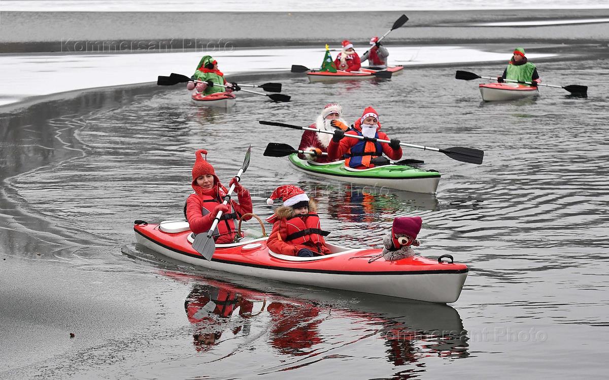 Традиционный забег и заплыв Санта-Клаусов на Комсомольском озере.