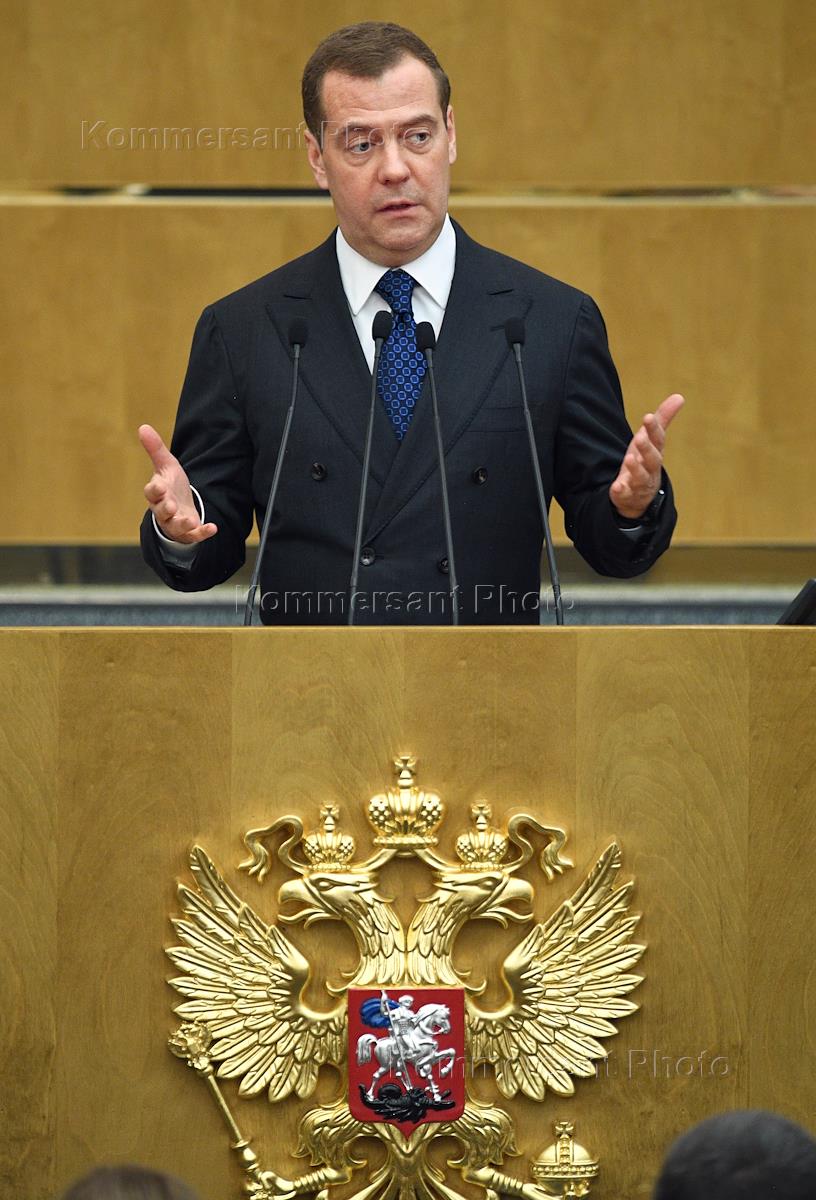 Председатель правительства России Дмитрий Медведев в Государстенной думе (ГД) России.