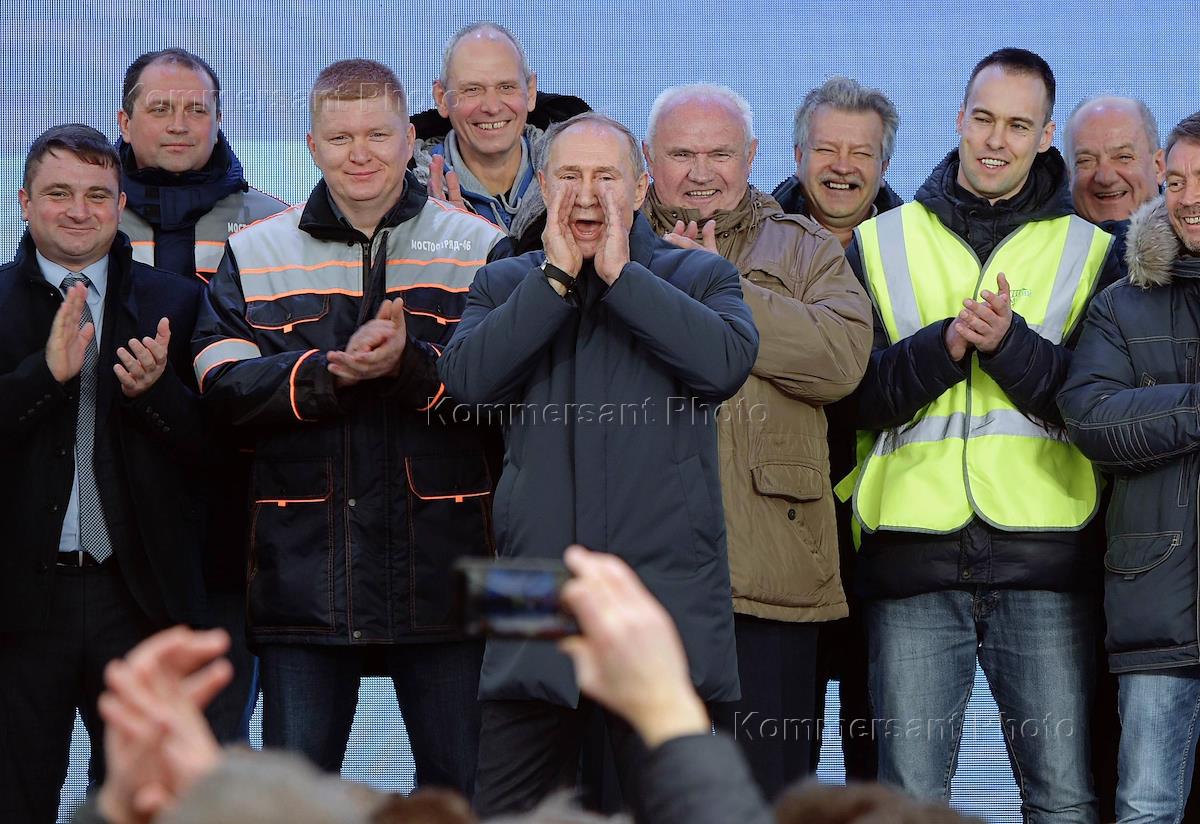 Президент России Владимир Путин (в центре) во время выступления на церемонии запуска движения по…
