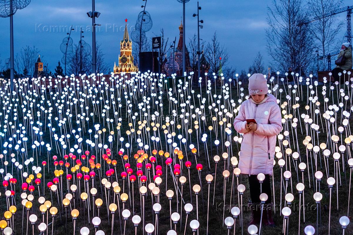 Виды Москвы. Новогодняя иллюминация в ландшафтном парке "Зарядье".