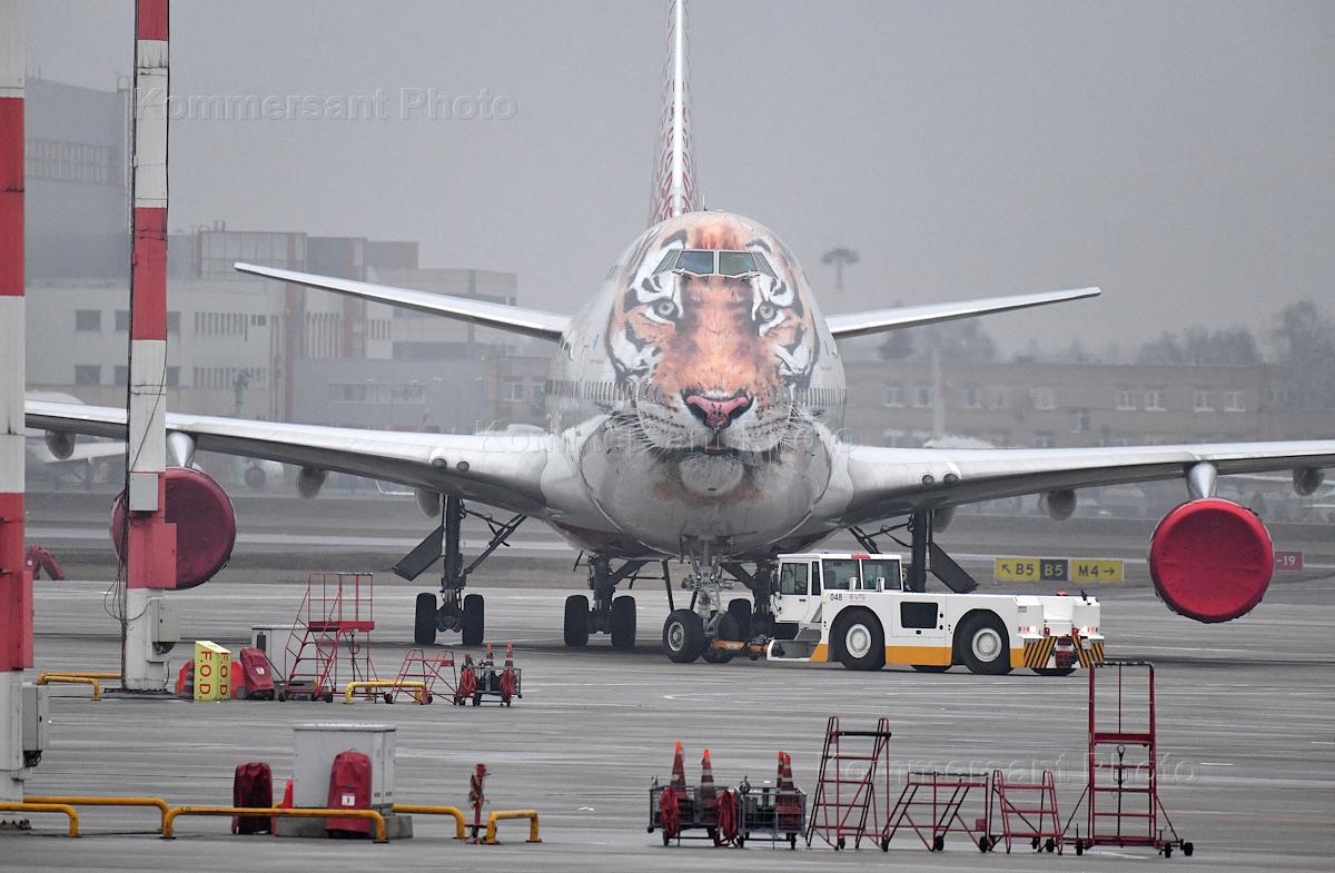 Жанровая фотография. Самолеты в аэропорту Внуково имени А.Н.Туполева. Самолет авиакомпании "Россия".