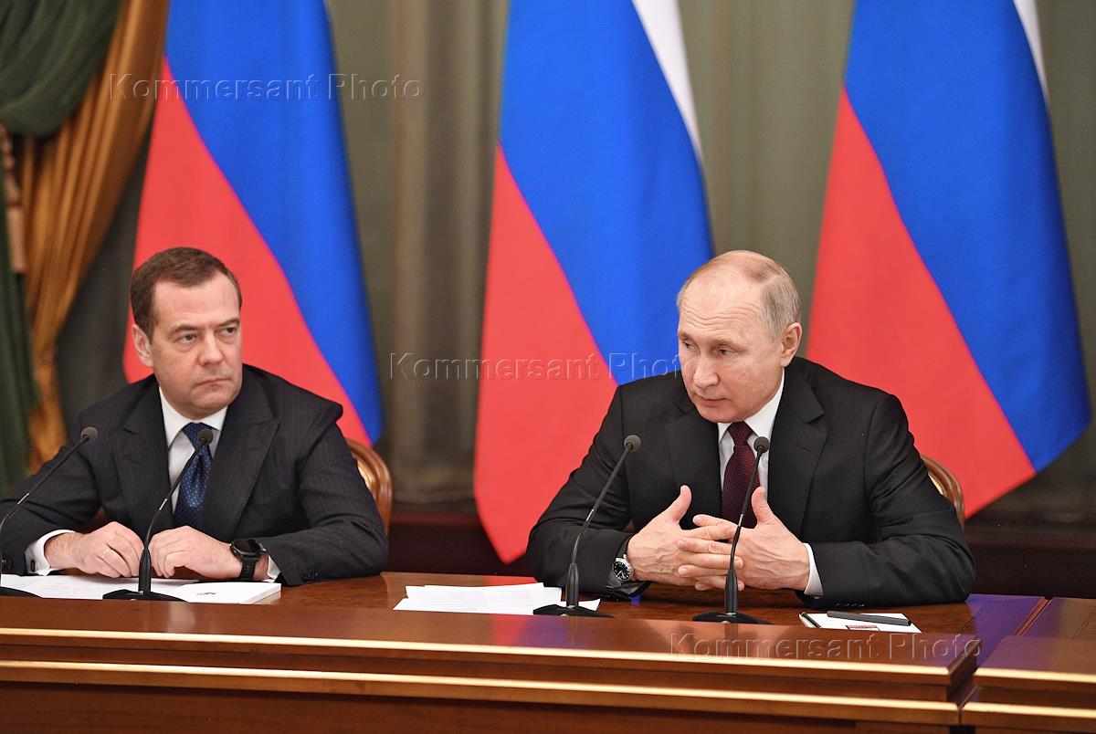 Заседание правительства России. Слева направо: председатель правительства России Дмитрий Медведев,…
