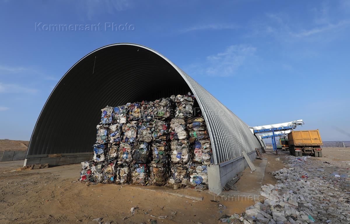 Камышинский мусорный полигон. Упакованный мусор из пластика.