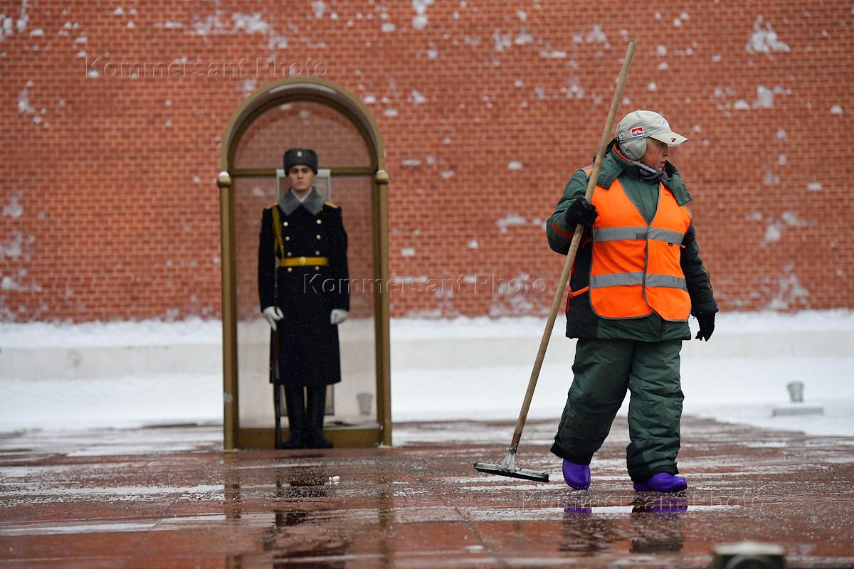 Жанровая фотография. Солдат роты почетного караула во время дежурства у мемориала "Могила…
