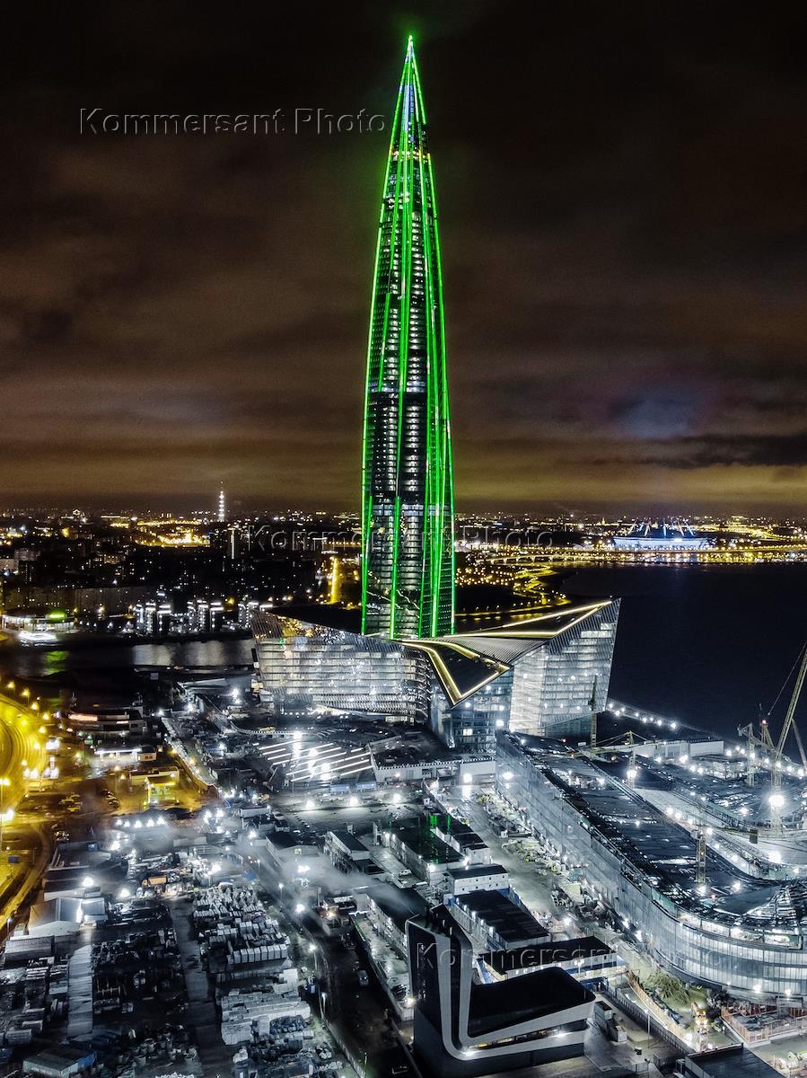 Виды Санкт-Петербурга. Общественно-деловой комплекс "Лахта Центр" в новогоднем освещении.