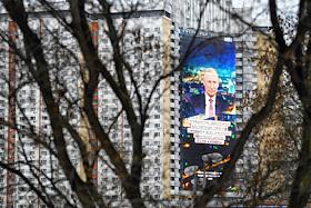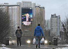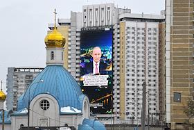 Трансляция ежегодного Послания президента России Владимира Путина Федеральному Собранию на гостинице "Салют".