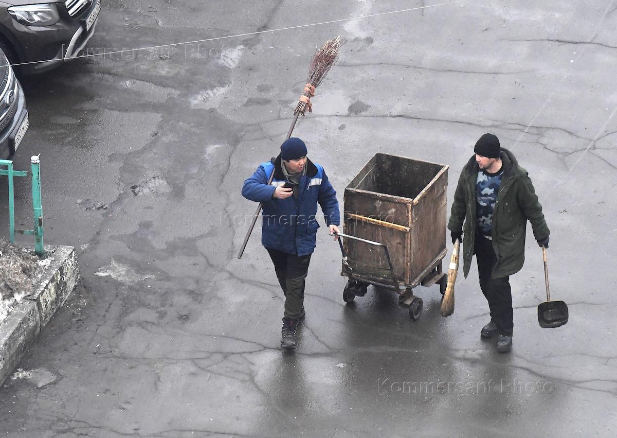 Жанровая фотография. Сотрудники коммунальных служб во время уборки мусора.