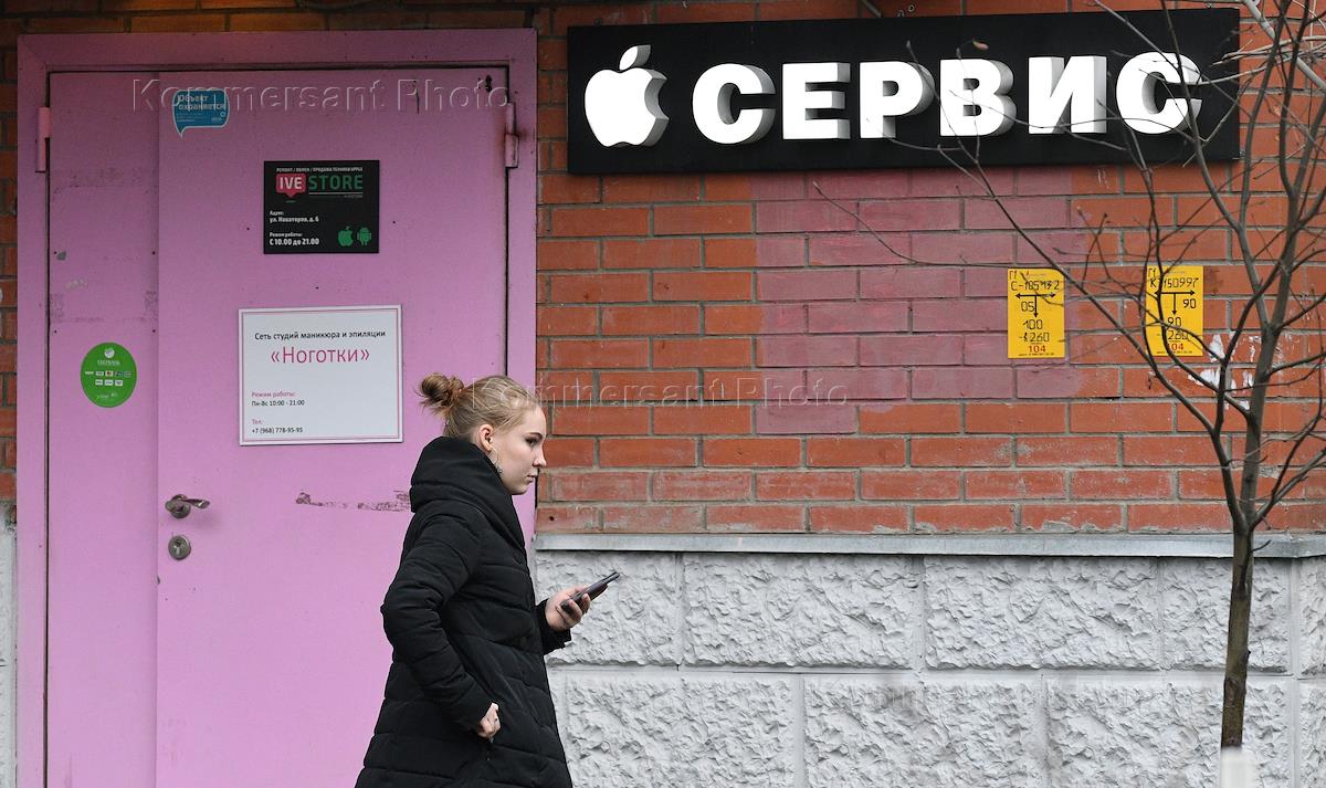 Жанровая фотография. Вывеска "Сервис", логотип корпорации "Apple".