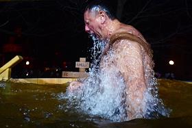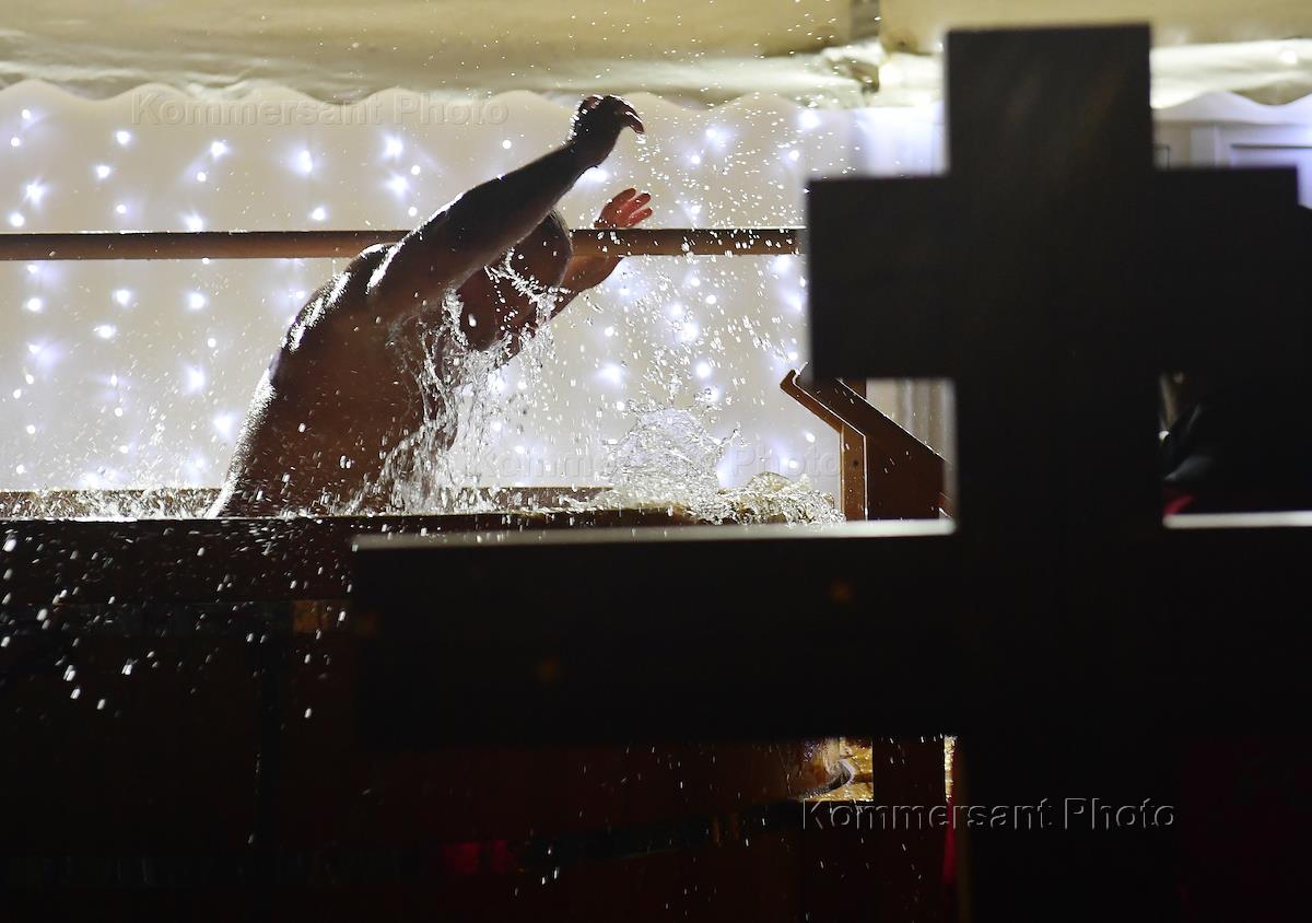 Праздник Крещения Господня. Крещенские купания в саду имени Баумана. Мужчина во время купания.