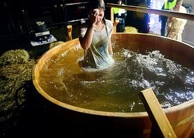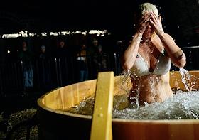 Праздник Крещения Господня. Крещенские купания в саду имени Баумана. Девушка по время купания.