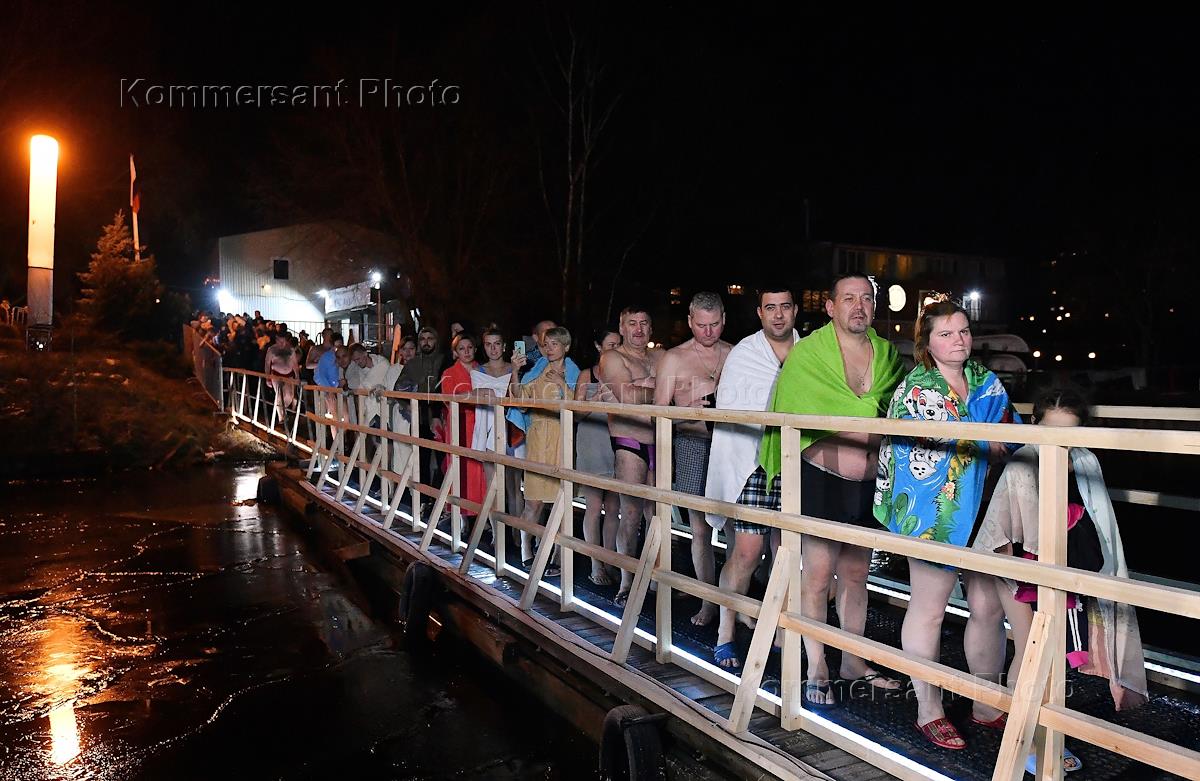 Праздник Крещения Господня. Верующие во время Крещенских купаний в Строгинской пойме.