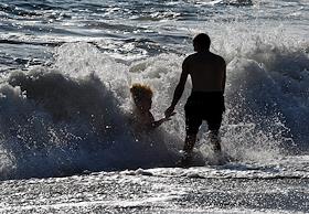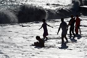 Праздник Крещения Господня. Верющие во время крещенских купаний на берегу штормящего Черного моря.
