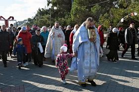 Праздник Крещения Господня. Священнослужители и верющие во время обряда освящения мест массового…
