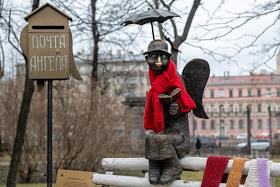 Виды Санкт-Петербурга. Скульптура читающего ангела и отделение "Почты ангела" в Измайловском саду.