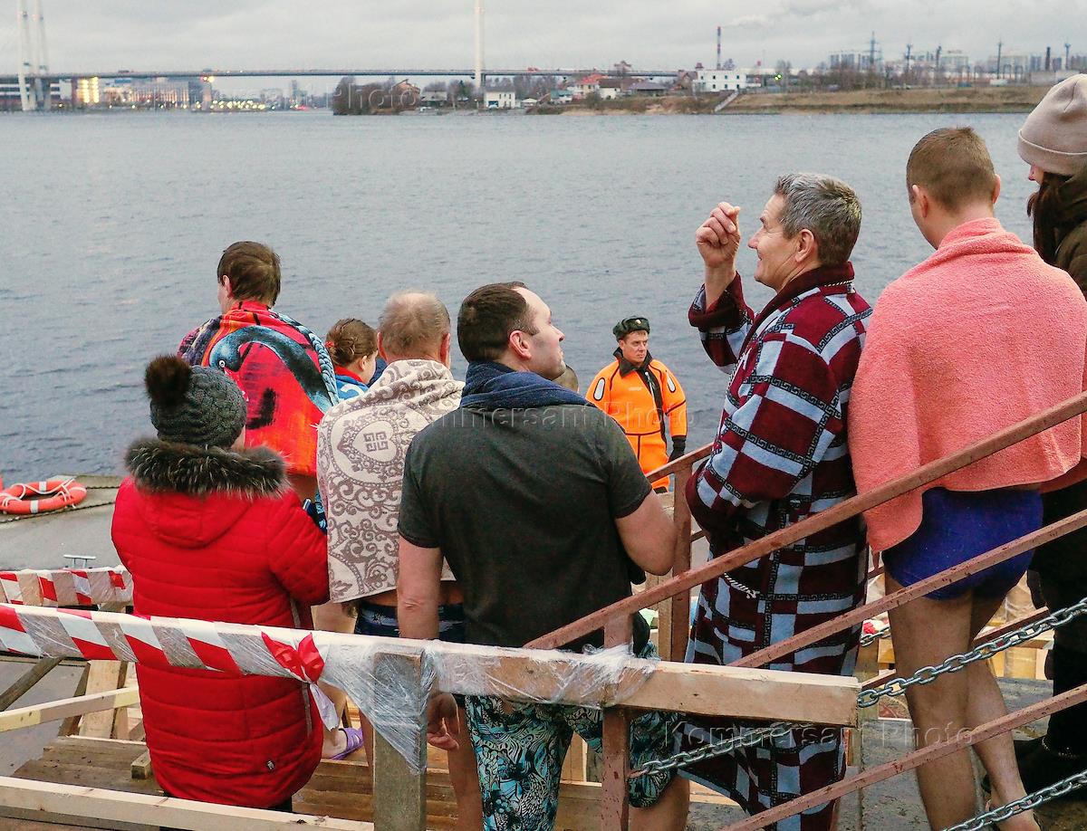 Праздник Крещения Господня. Крещенские купания на реке Неве у яхт-клуба "Восточный".