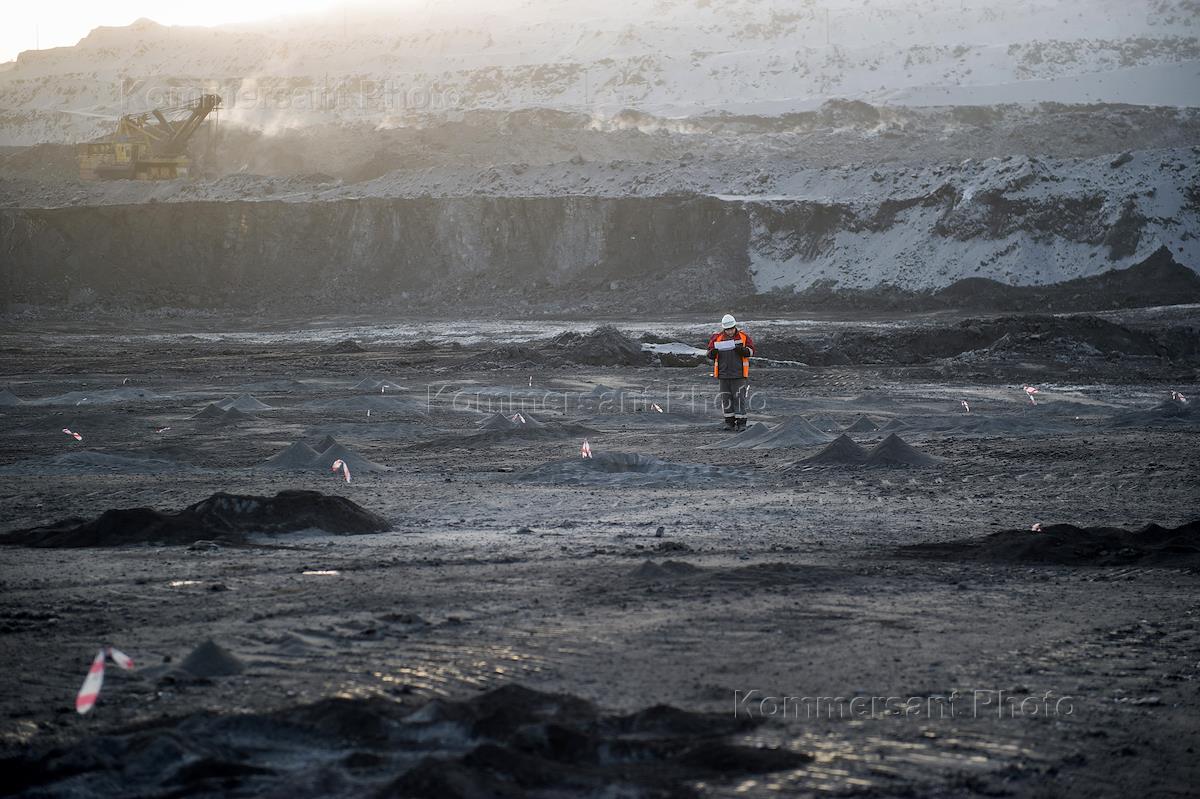 Компания "Сибирский Антрацит". Открытая добыча угля. Сотрудник компании в карьере.