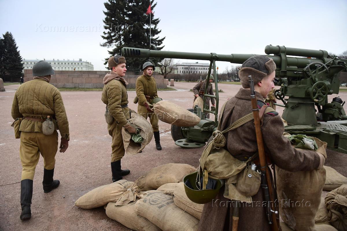 76-я годовщина полного освобождения Ленинграда от Блокады. Участники реконструкции на Марсовом поле