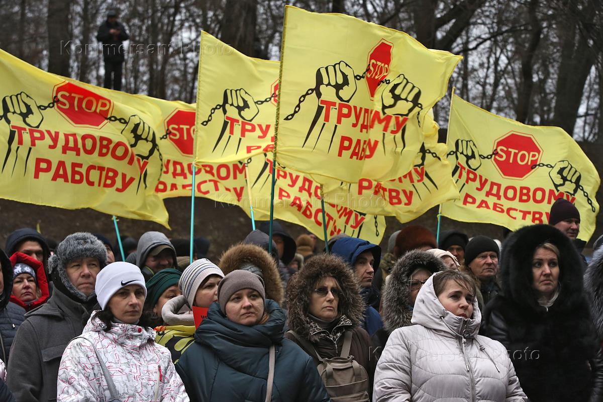 Акция протеста "Волна гнева" против нового закона о труде, провела федерация профсоюзов Украины у здания Кабинета министров Украины.