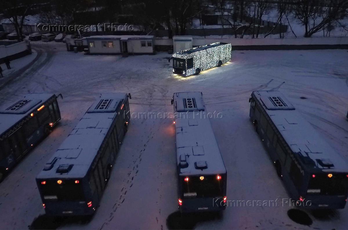Новогодние украшения общественного транспорта.