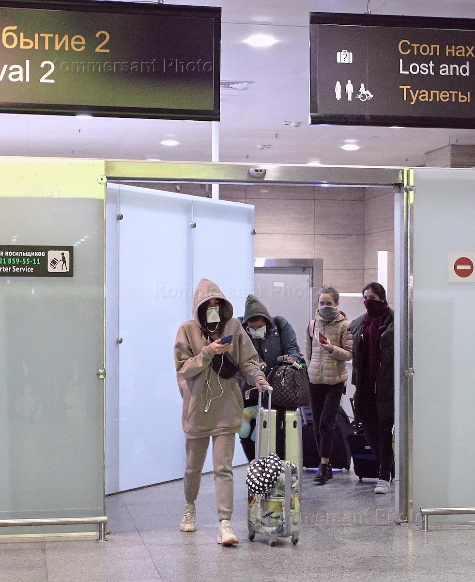 Международный аэропорт "Пулково". Жанровая фотография. Пассажиры в медицинских масках во время…