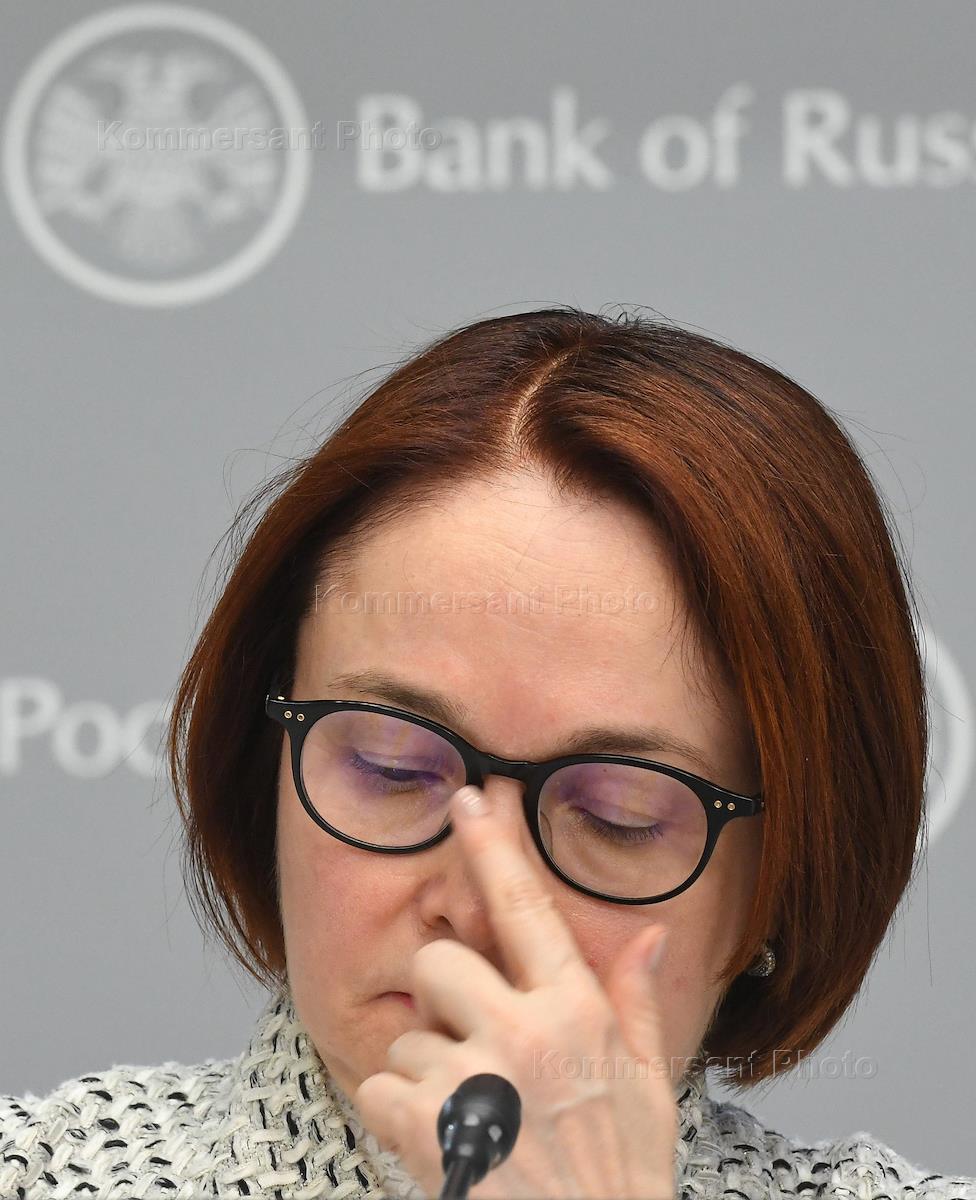 Председатель Центрального Банка России Эльвира Набиуллина во время пресс-конференции, посвященной…