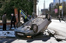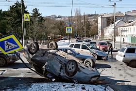 Жанровая фотография. Автомобильная авария. Перевернутый на крышу автомобиль.