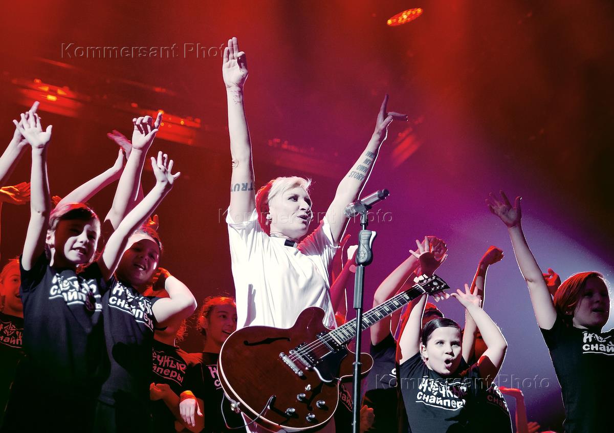 Лидер группы "Ночные снайперы" Диана Арбенина во время выступления на сольном концерте группы в "ВТБ…