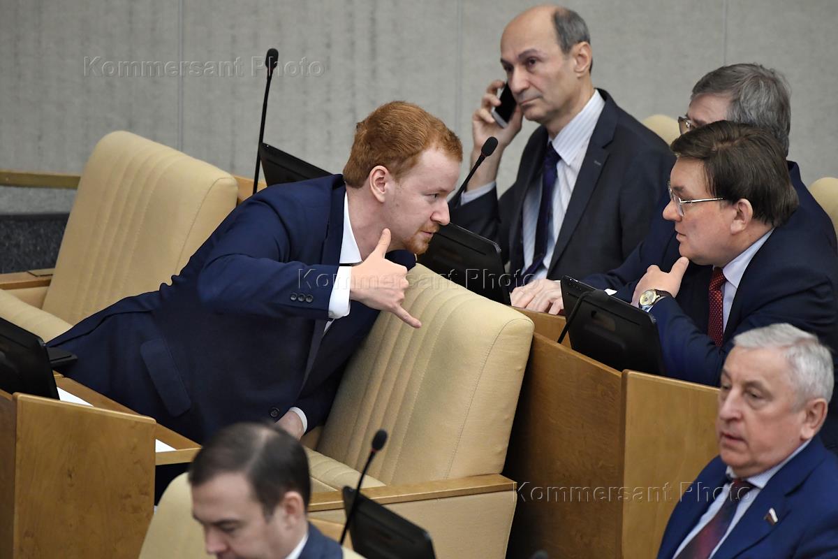 Пленарное заседание Государственной думы (ГД) России. Слева направо: член Комитета ГД по делам…