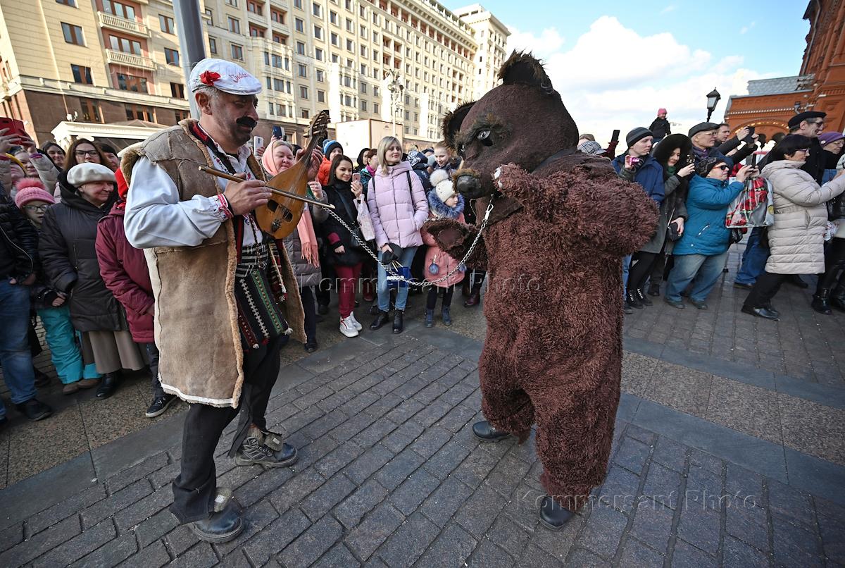 Церемония открытия гастрономического фестиваля "Московская Масленица" на Манежной площади.