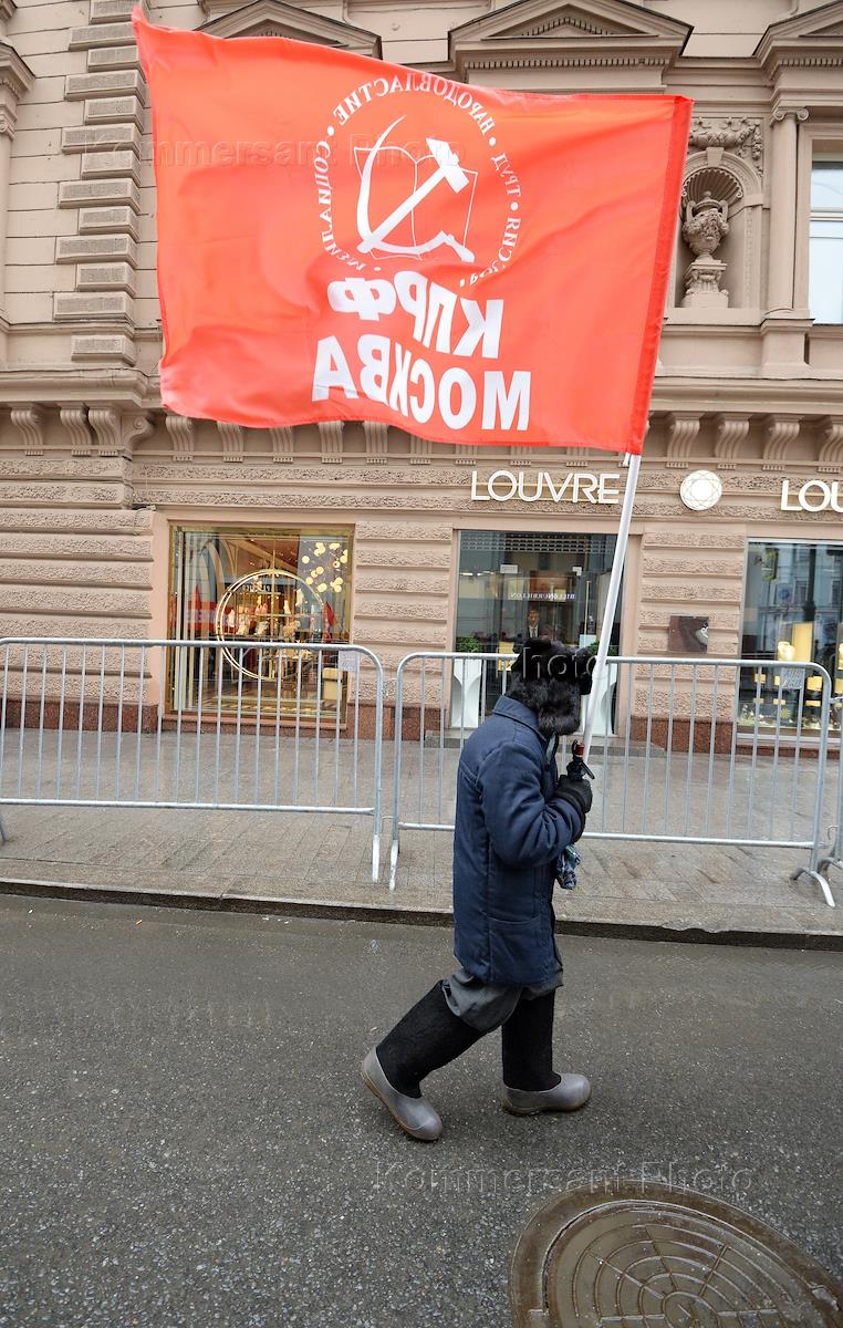 Участник шествия, организованного КПРФ, посвященного 102-й годовщине образования Рабоче-крестьянской…