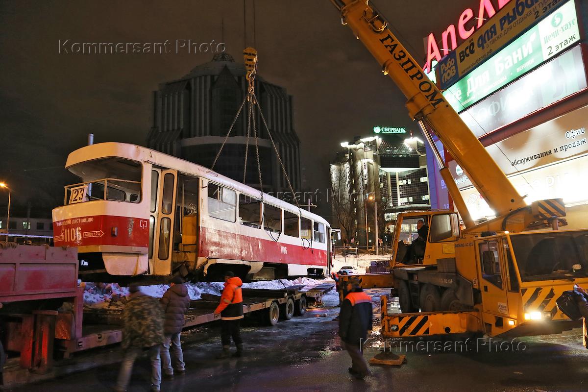 Трамвай сошел с рельсов и, завалившись, повредил пять автомобилей на улице Ново-Садовая, 305А.…