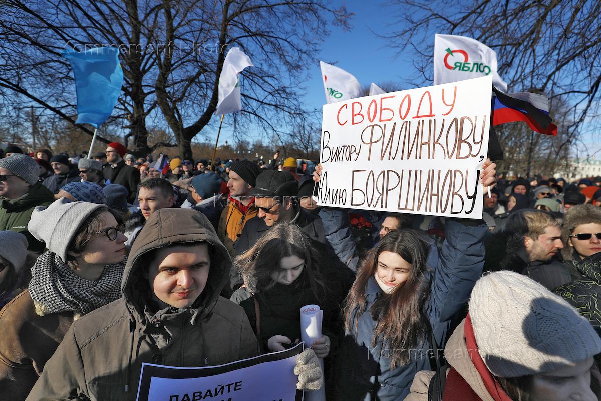 Митинг памяти Бориса Немцова на Троицкой площади у Соловецкого камня