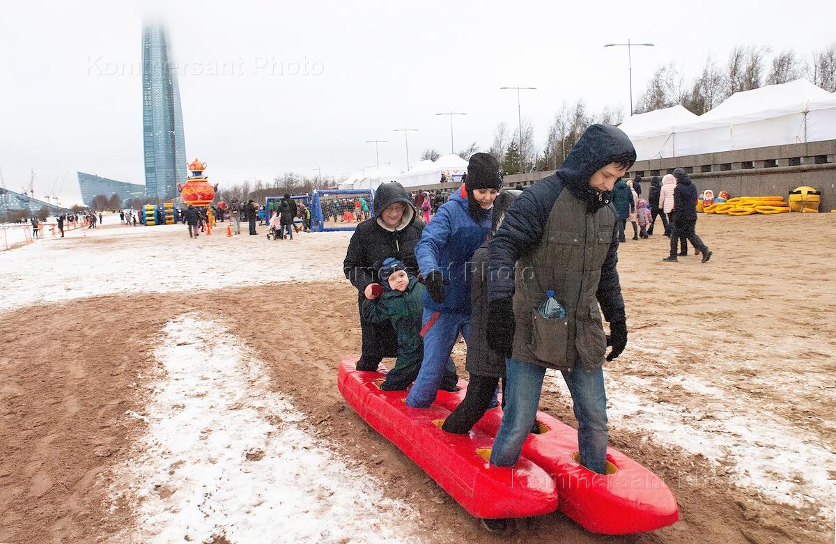 Празднование широкой Масленицы в парке 300-летия Санкт-Петербурга.