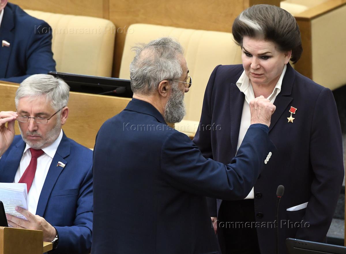 Пленарное заседание Государственной Думы (ГД) России. Справа налево: член комитета ГД России по…