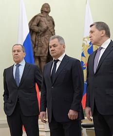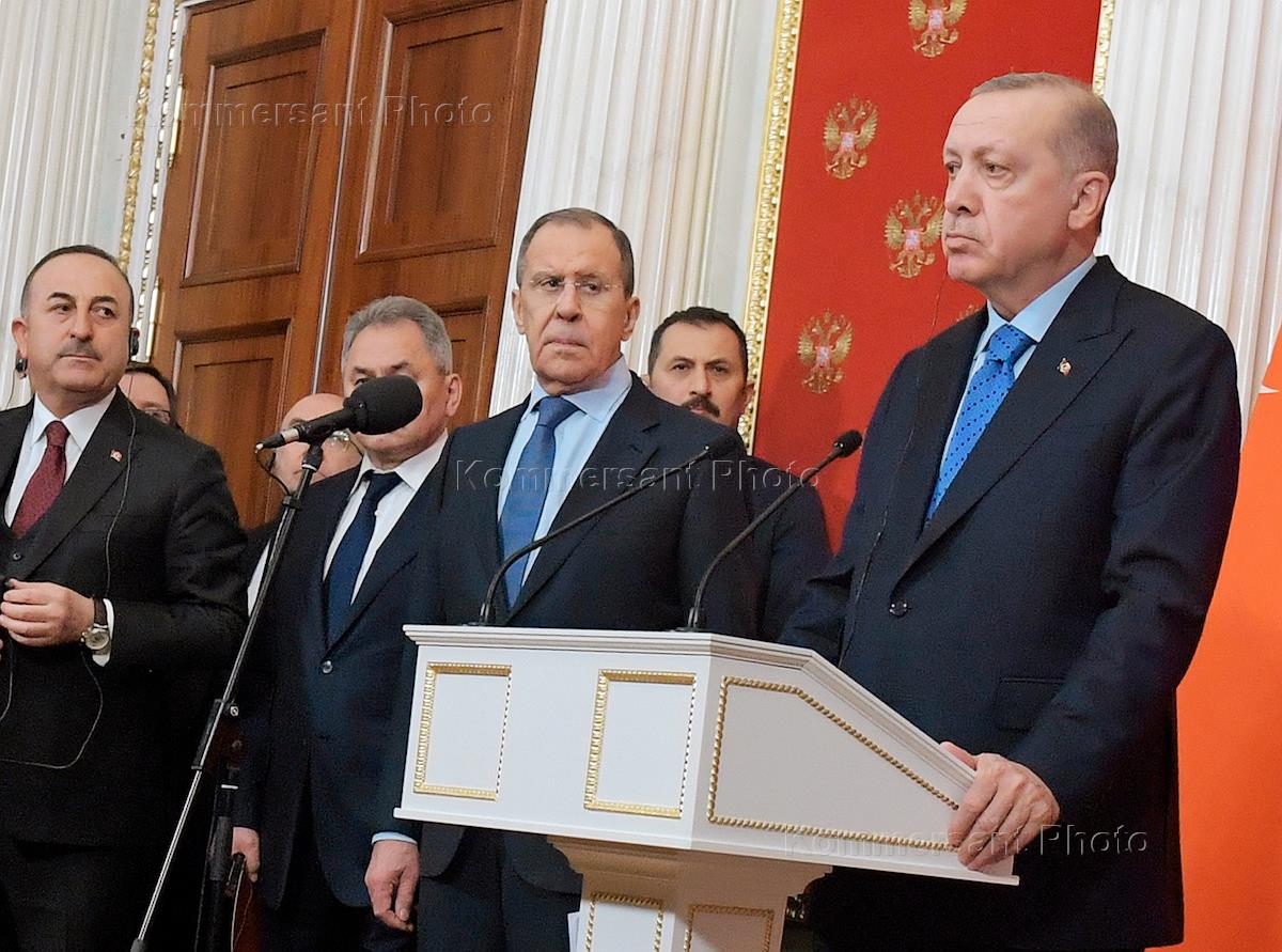 Президент Турецкой Республики Реджеп Тайип Эрдоган (слева), министр обороны России Сергей Шойгу…