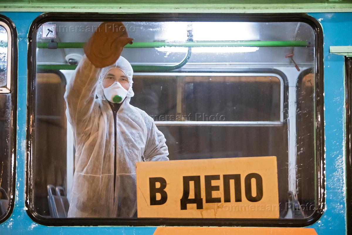 Ежедневная дезинфекция автобусов ГорТранса в Калининграде.